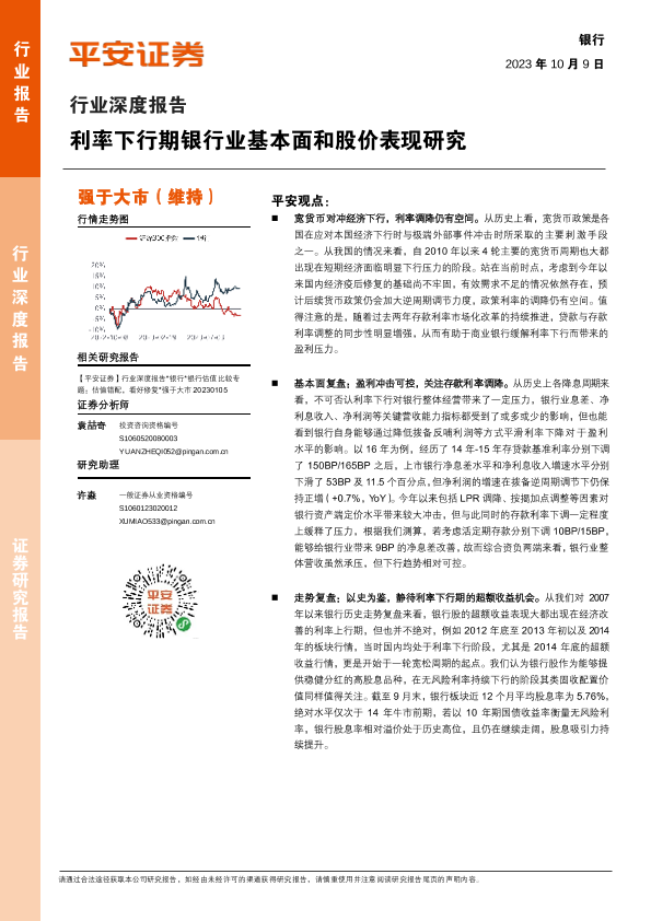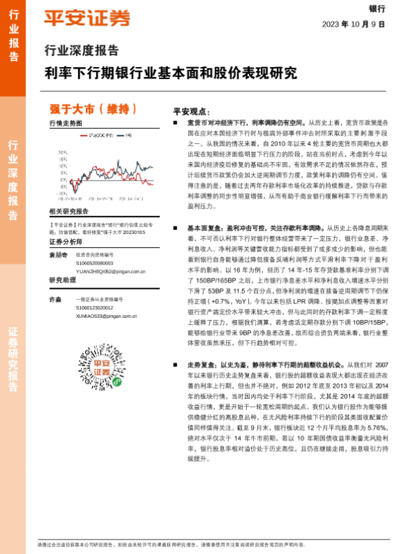 【平安证券】【20231009】利率下行期银行业基本面和股价表现研究-24页