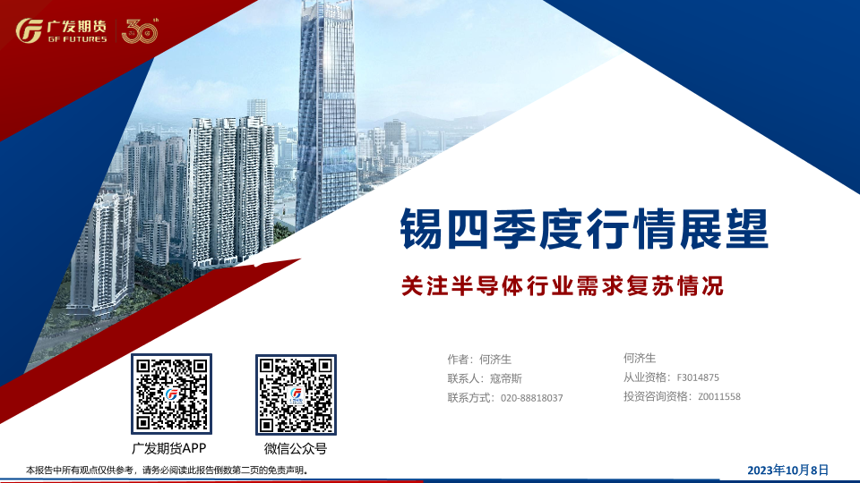 【广发期货】【20231008】锡四季度行情展望:关注半导体行业需求复苏情况-21页
