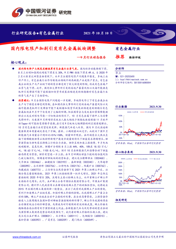 【银河证券】【20211010】有色金属行业9月行业动态报告:国内限电限产加剧引发有色金属板块调整-25页