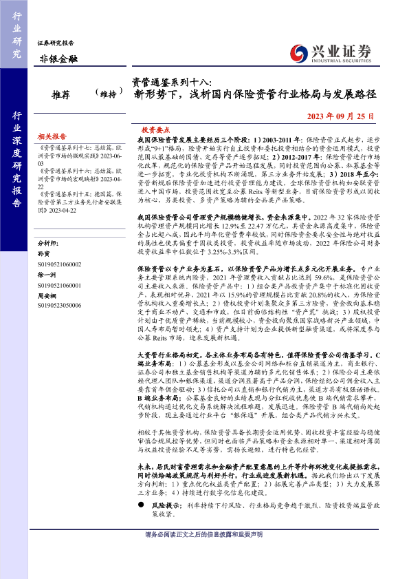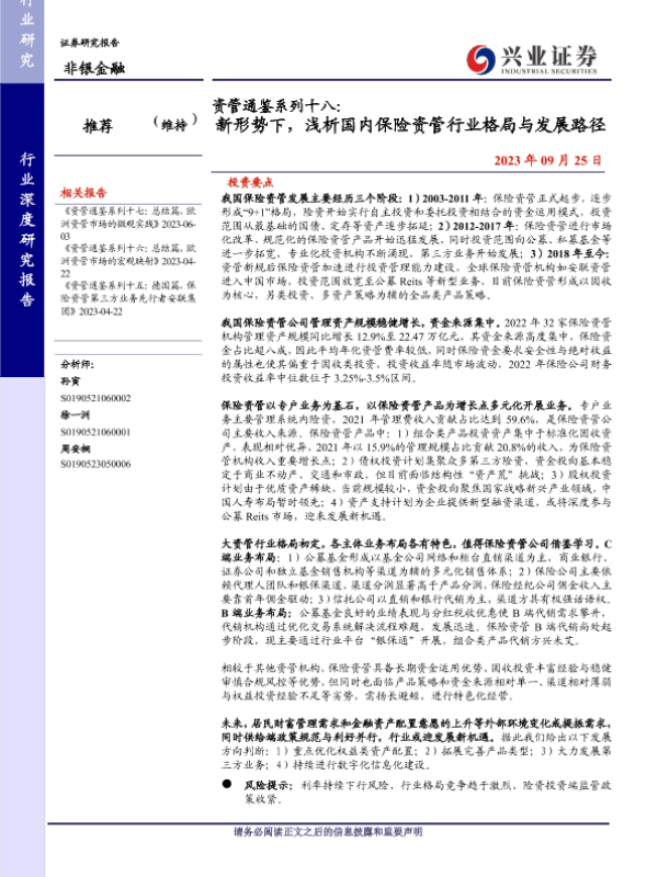 【兴业证券】【20230925】新形势下,浅析国内保险资管行业格局与发展路径-36页