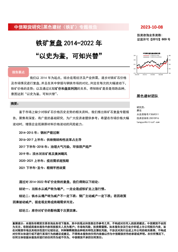 【中信期货】【20231008】黑色建材(铁矿)专题报告:铁矿复盘2014_2022年,“以史为鉴,可知兴替”-33页