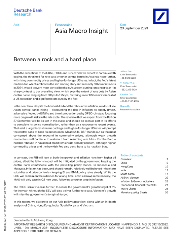 【Deutsche Bank Research】【20230923】Asia Macro Insight Between a rock and a hard place-40页