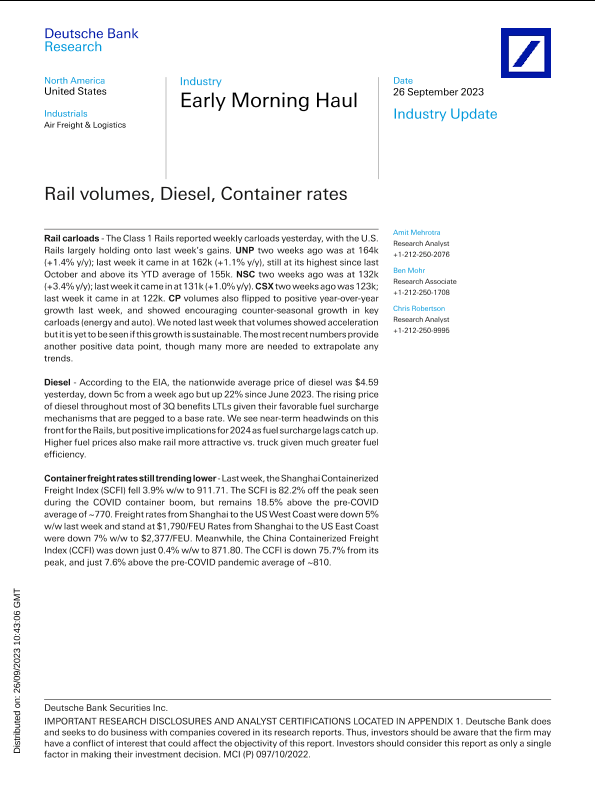 【Deutsche Bank Securities Inc.】【20230926】sche Bank-Early Morning Haul Rail volumes, Diesel, Container rates-7页