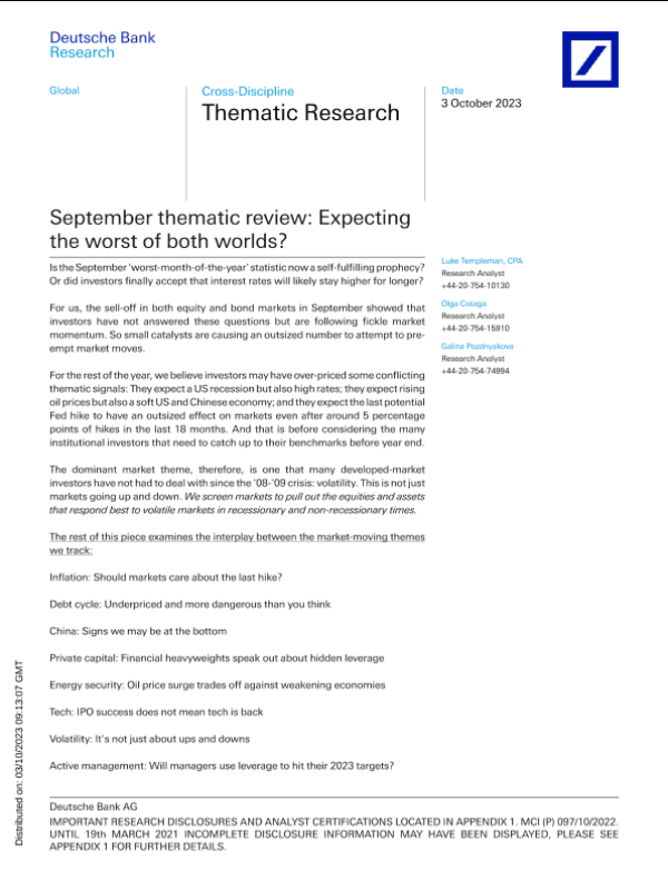 【Deutsche Bank Research】【20231003】September thematic review Expecting the worst of both worlds?-20页