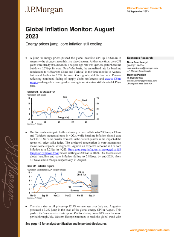 【J.P. Morgan】【20230926】Global Inflation Monitor August 2023 Energy prices jump, core inflation still cooling-16页