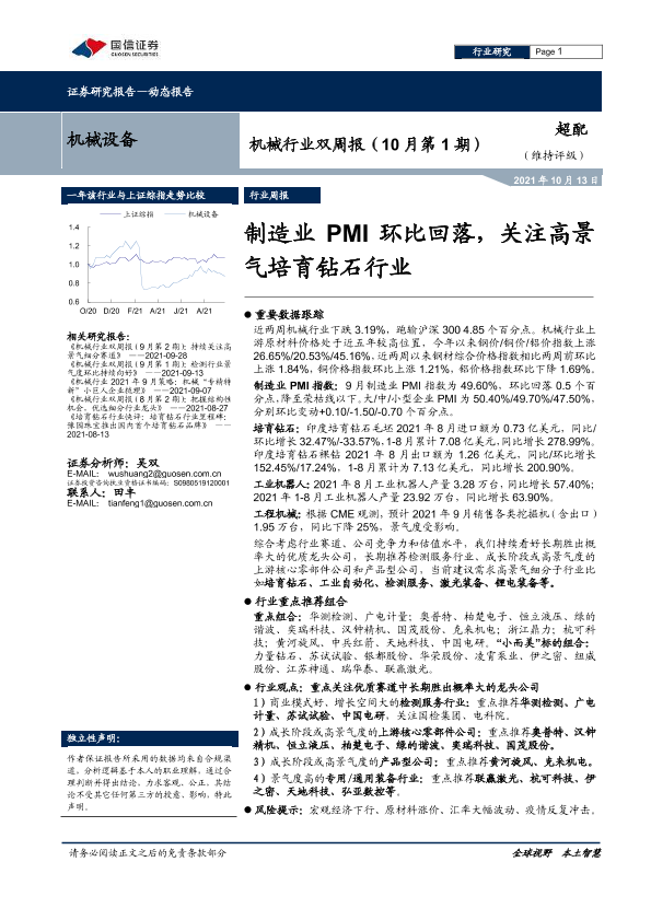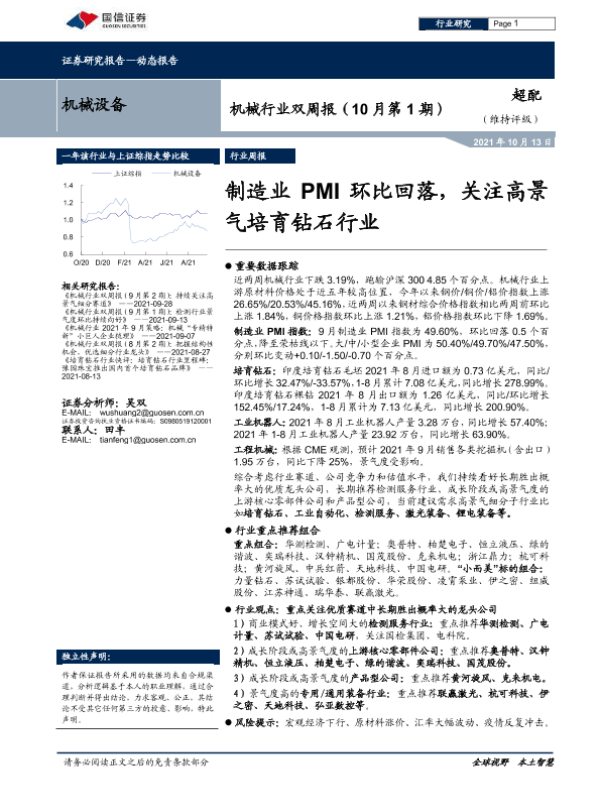 【国信证券】【20211013】机械行业双周报(10月第1期):制造业PMI环比回落,关注高景气培育钻石行业-21页