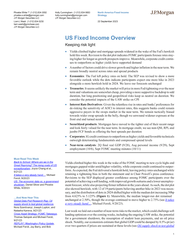 【J.P. Morgan】【20230922】JPMorgan Econ FI-US Fixed Income Overview Keeping risk light-11页