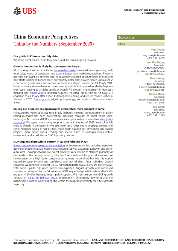 【UBS Securities Asia Limited】【20230921】China Economic Perspectives _China by the Numbers (September 2023)-24页