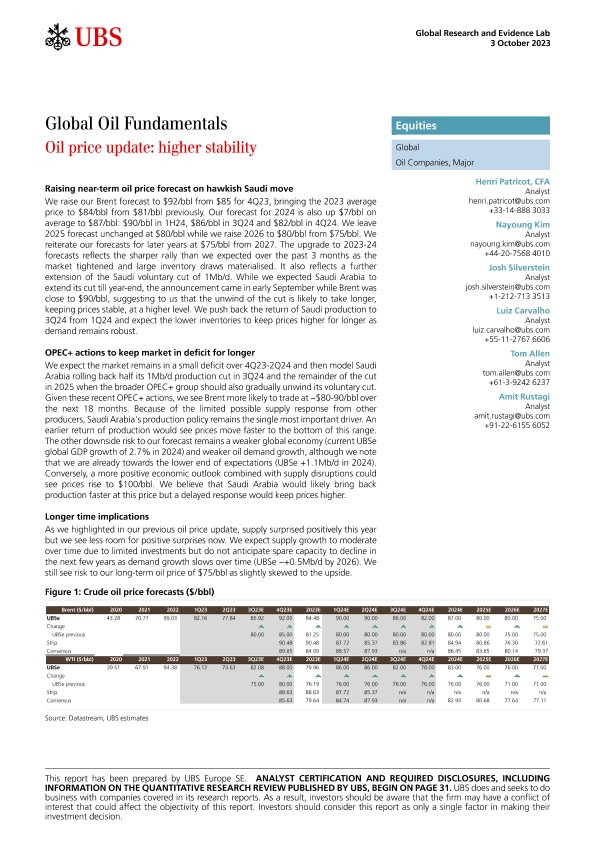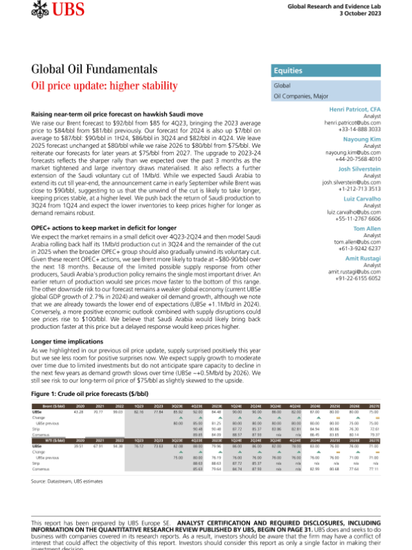 【UBS Europe SE】【20231003】Global Oil Fundamentals _Oil price update higher stability_-40页