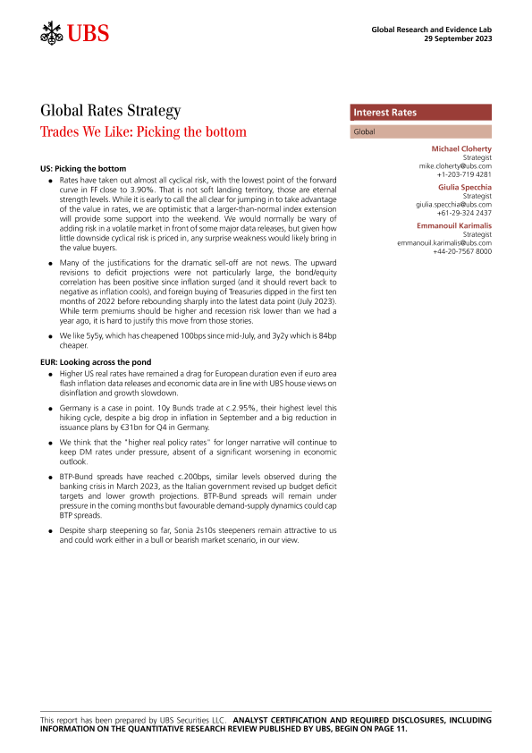 【UBS Securities LLC】【20230929】Global Rates Strategy _Trades We Like Picking the bottom-15页