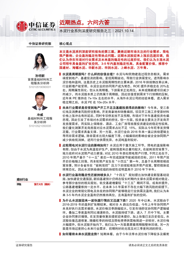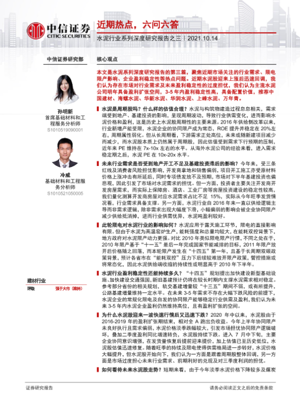 【中信证券】【20211014】水泥行业系列深度研究报告之三:近期热点,六问六答-18页