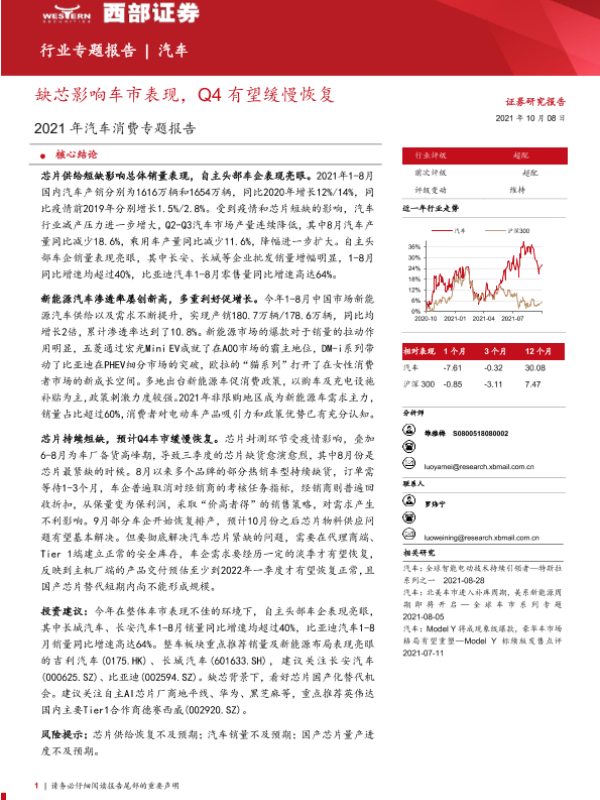 【西部证券】【20211008】汽车行业2021年汽车消费专题报告:缺芯影响车市表现,Q4有望缓慢恢复-17页