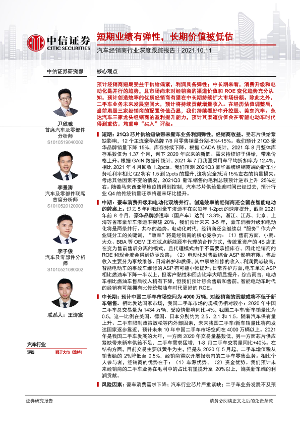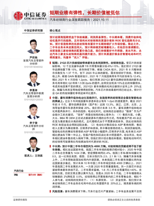 【中信证券】【20211011】汽车经销商行业深度跟踪报告:短期业绩有弹性,长期价值被低估-18页