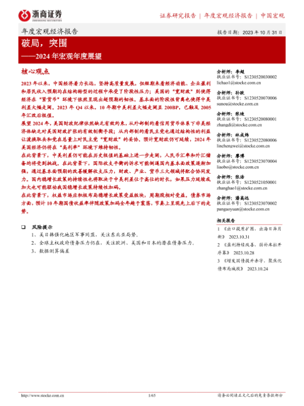 【浙商证券】【20231031】2024年宏观年度展望:破局,突围-64页