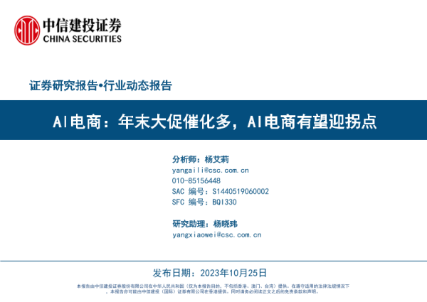 【中信建投证券】【20231025】Al电商行业动态报告:年末大促催化多,AI电商有望迎拐点-50页