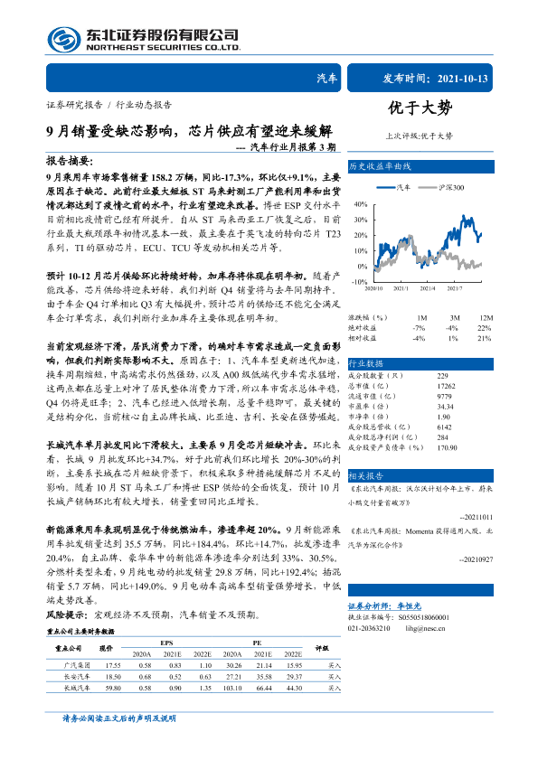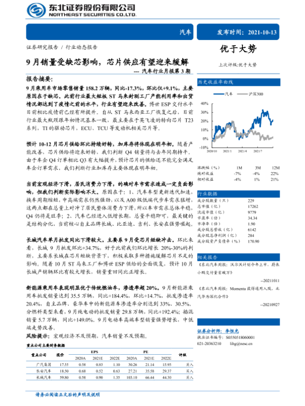 【东北证券】【20211013】9月销量受缺芯影响,芯片供应有望迎来缓解---汽车行业月报第 3期-15页