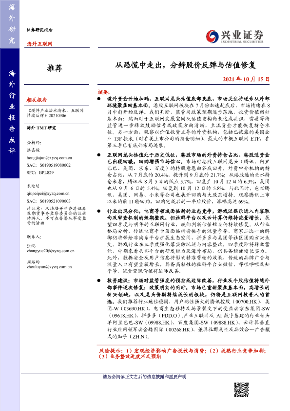 【兴业证券】【20211015】海外互联网行业:从恐慌中走出,分辨股价反弹与估值修复-34页