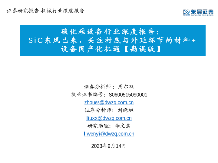 【东吴证券】【20230914】碳化硅设备行业深度报告:SiC东风已来,关注衬底与外延环节的材料+设备国产化机遇【勘误版】-75页