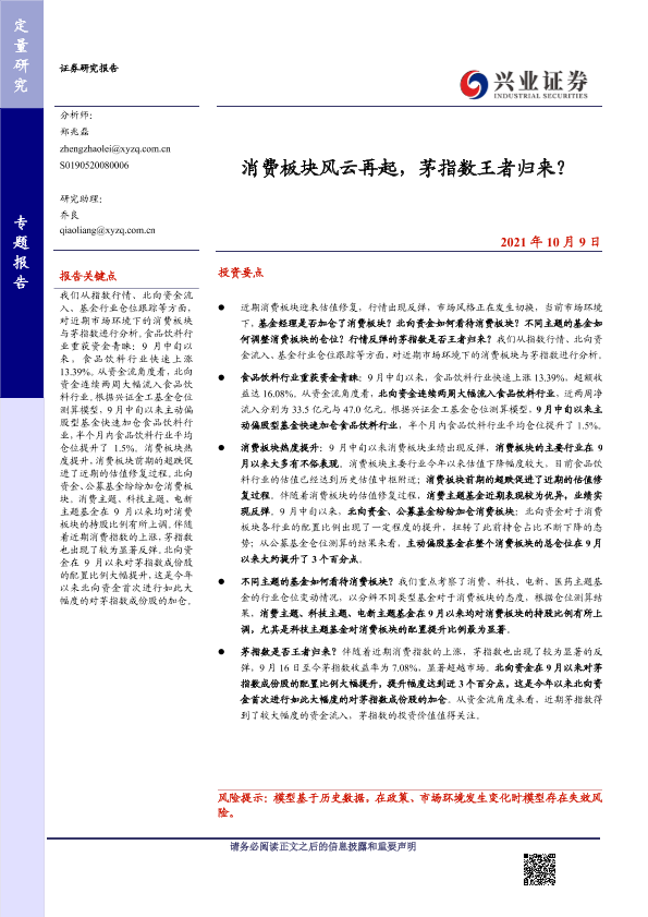【兴业证券】【20211009】消费板块风云再起,茅指数王者归来?-16页