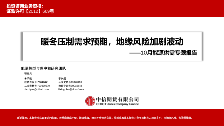 【中信期货】【20231031】10月能源供需专题报告:暖冬压制需求预期,地缘风险加剧波动-83页