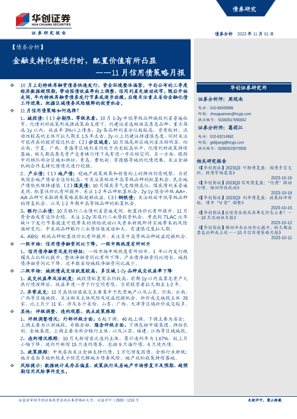 【华创证券】【20231101】11月信用债策略月报:金融支持化债进行时,配置价值有所凸显-31页