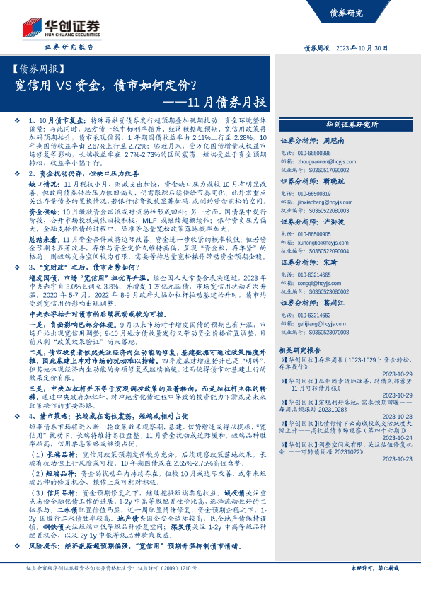 【华创证券】【20231030】11月债券月报:宽信用VS资金,债市如何定价?-27页