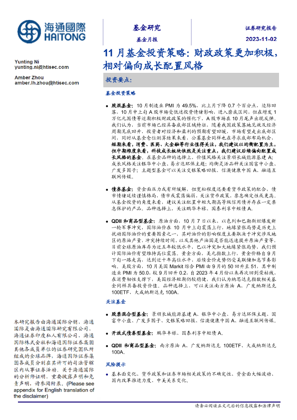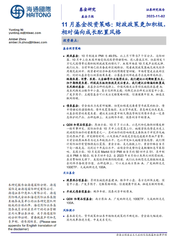 【海通国际】【20231102】11月基金投资策略:财政政策更加积极,相对偏向成长配置风格-20页