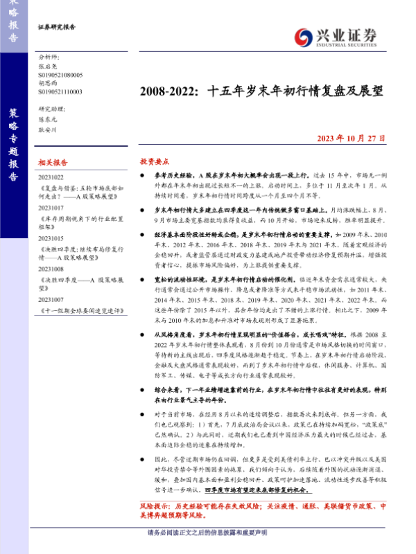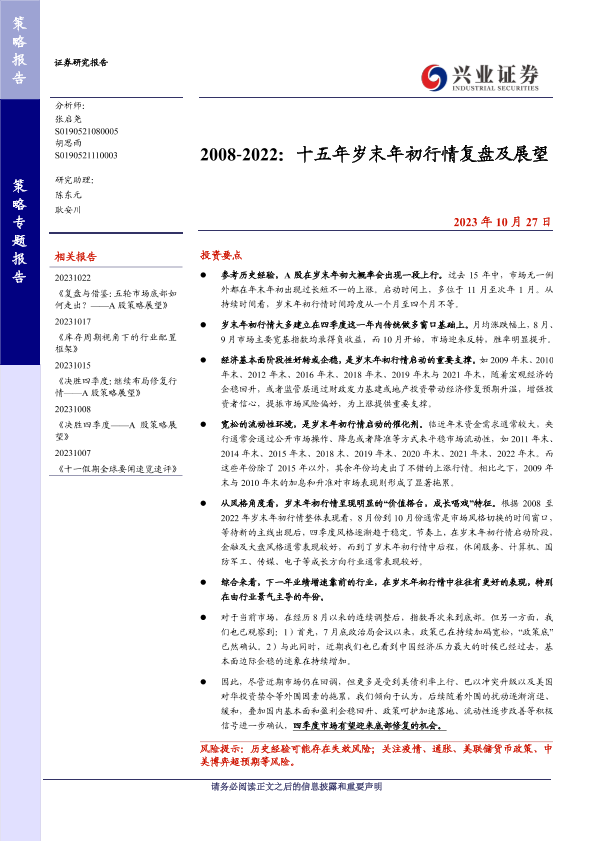 【兴业证券】【20231027】2008-2022:十五年岁末年初行情复盘及展望-38页