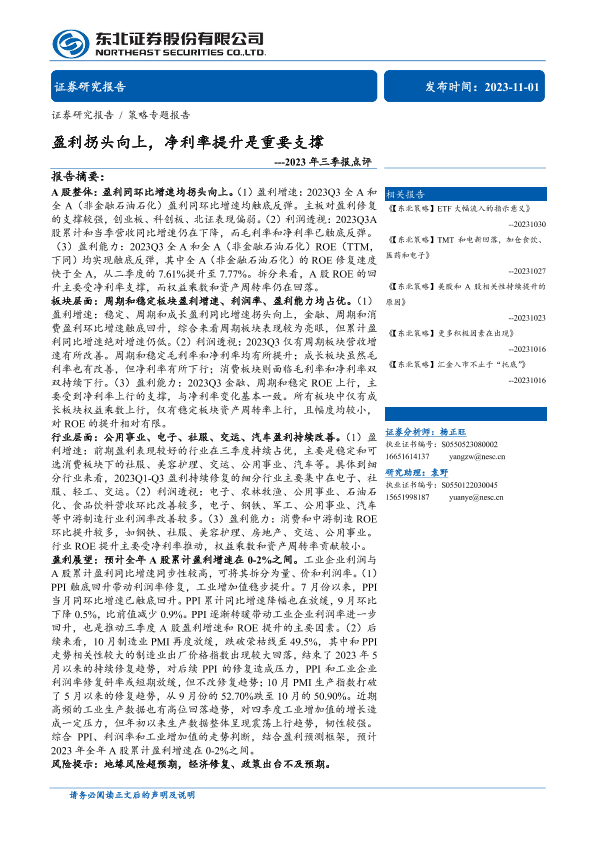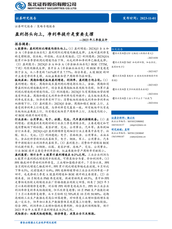 【东北证券】【20231101】2023年三季报点评:盈利拐头向上,净利率提升是重要支撑-20页
