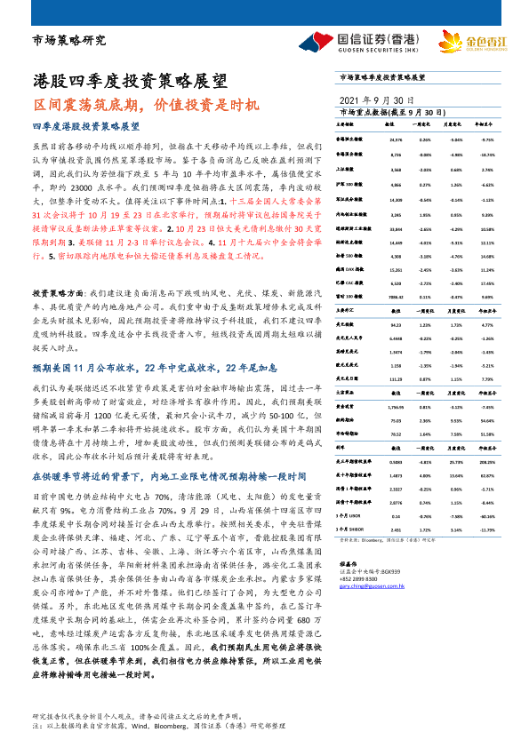 【国信证券(香港)】【20210930】港股四季度投资策略展望:区间震荡筑底期,价值投资是时机-25页