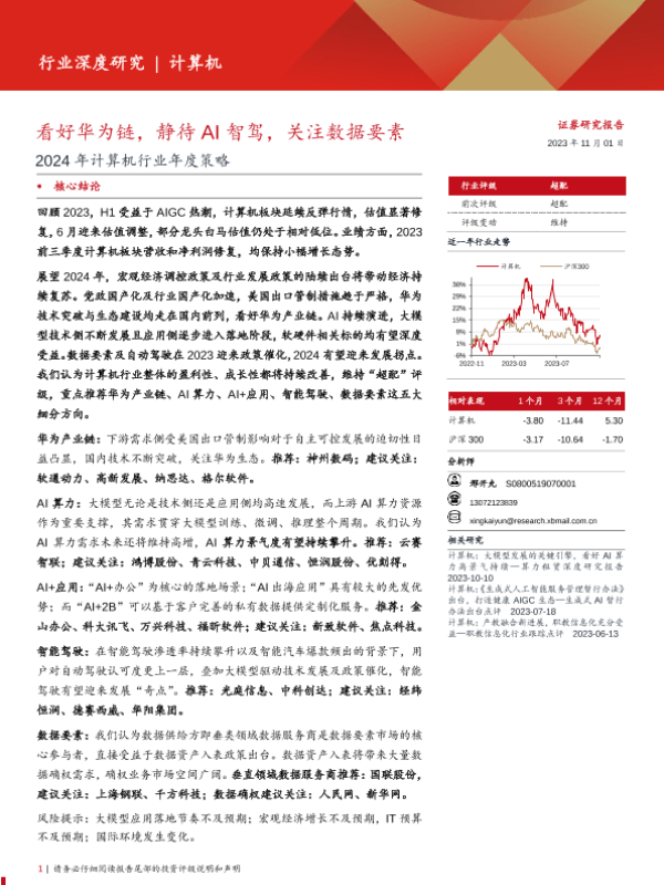 AI算力 华为产业链 年度策略 数据要素 计算机行业