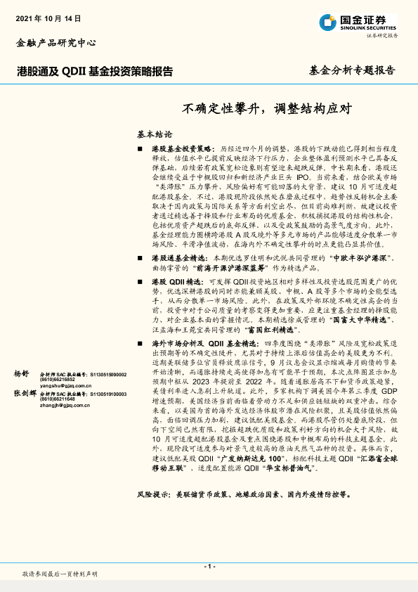【国金证券】【20211014】港股通及QDII基金投资策略报告:不确定性攀升,调整结构应对-31页
