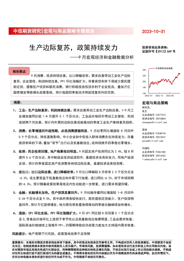 【中信期货】【20231031】9月宏观经济和金融数据分析:生产边际复苏,政策持续发力-27页