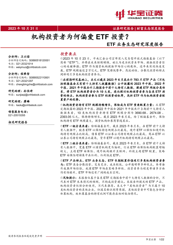 【华宝证券】【20231031】ETF业务生态研究深度报告:机构投资者为何偏爱ETF投资?-22页