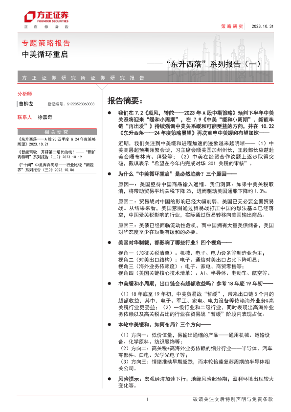 【方正证券】【20231031】“东升西落”系列报告(一):中美循环重启-22页