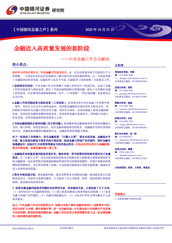 【银河证券】【20231031】金融迈入高质量发展的新阶段——中央金融工作会议解读-40页