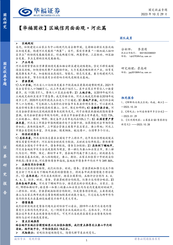 【华福证券】【20231029】【华福固收】区域信用面面观·河北篇-28页