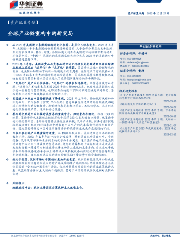 【华创证券】【20231027】全球产业链重构中的新变局-22页