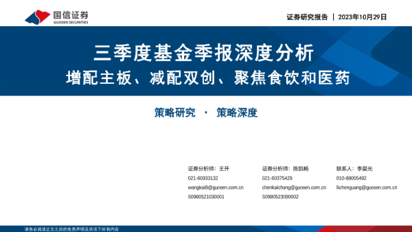 【国信证券】【20231029】三季度基金季报深度分析:增配主板、减配双创、聚焦食饮和医药-31页