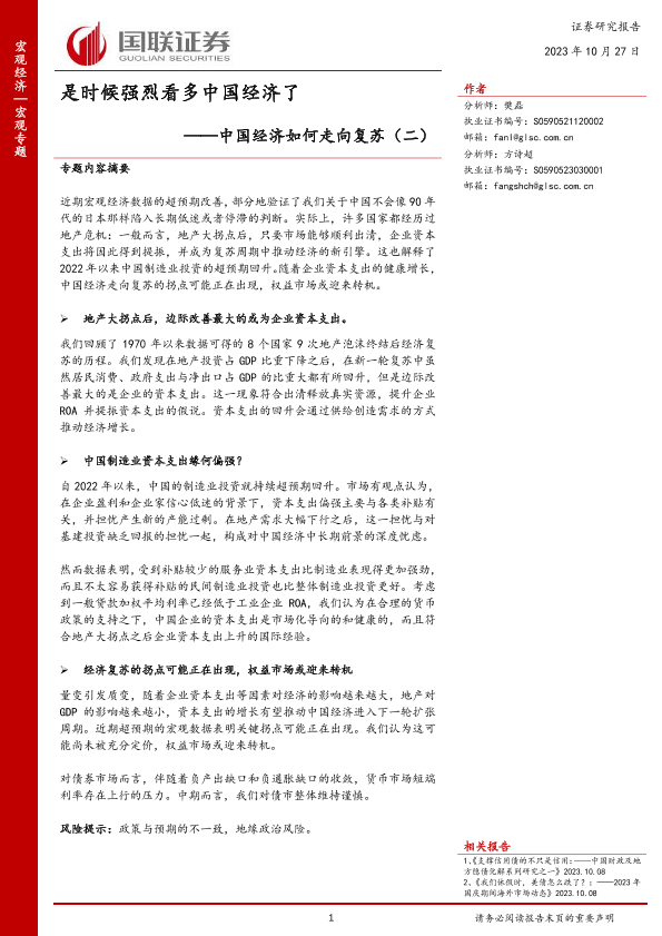 【国联证券】【20231027】中国经济如何走向复苏(二):是时候强烈看多中国经济了-36页