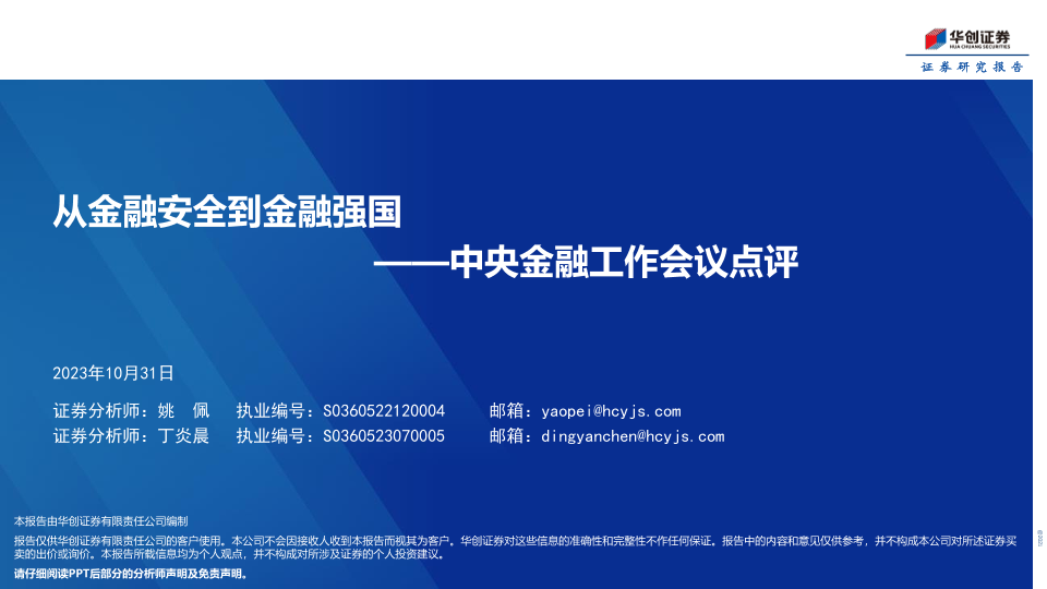 【华创证券】【20231031】中央金融工作会议点评:从金融安全到金融强国-20页