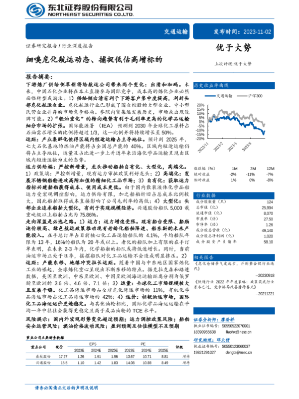【东北证券】【20231102】细嗅危化航运动态、捕捉低估高增标的-30页