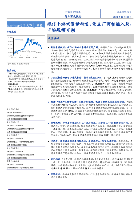 【海通证券】【20231030】传媒行业深度报告:微信小游戏蓄势待发,重点厂商相继入局,市场规模可期-21页