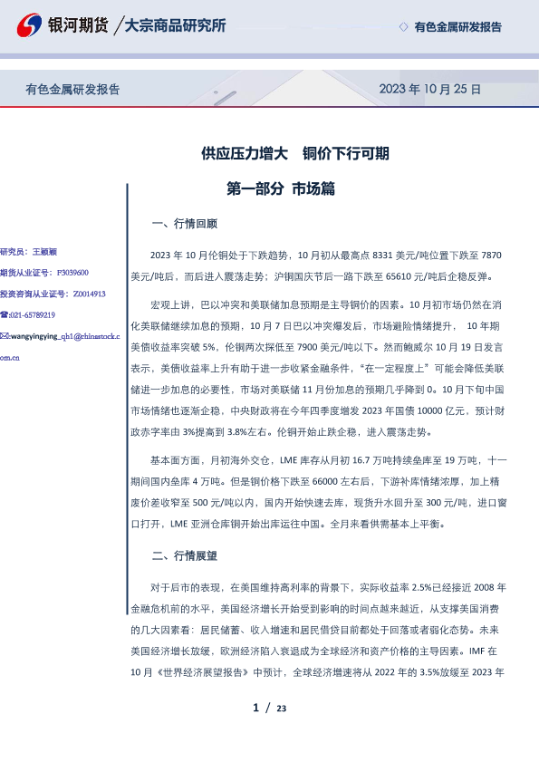 【银河期货】【20231025】供应压力增大,铜价下行可期-23页