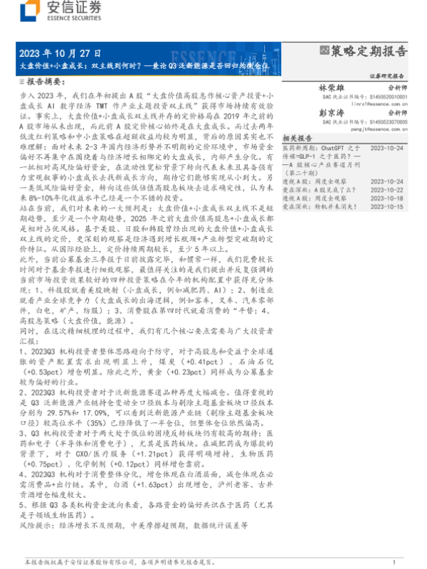 【安信证券】【20231029】兼论Q3泛新能源是否回归均衡仓位:大盘价值+小盘成长,双主线到何时?-47页