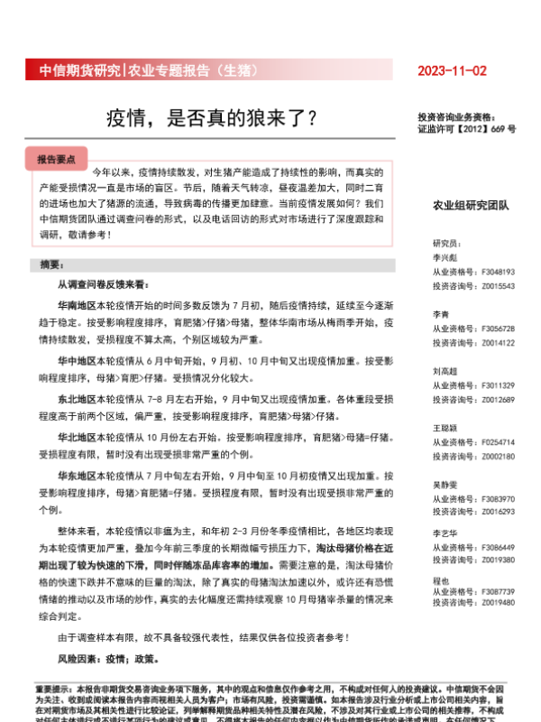 【中信期货】【20231102】农业专题报告(生猪):疫情,是否真的狼来了?-23页