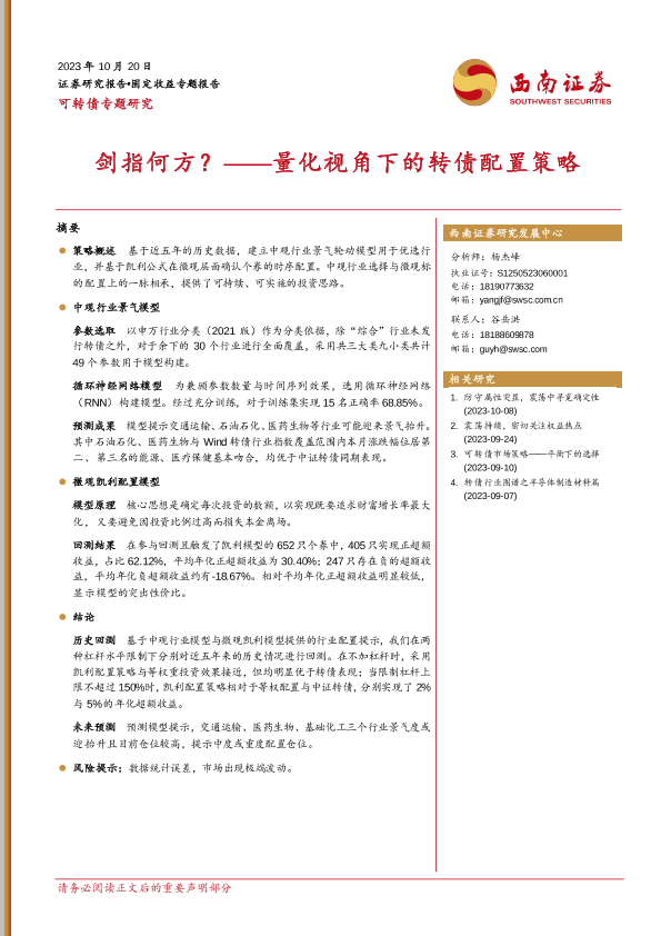 【西南证券】【20231020】可转债专题研究:剑指何方?——量化视角下的转债配置策略-19页