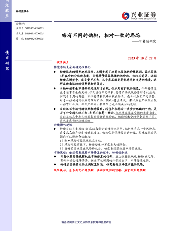 【兴业证券】【20231022】略有不同的韵脚,相对一致的思路——可转债研究-18页