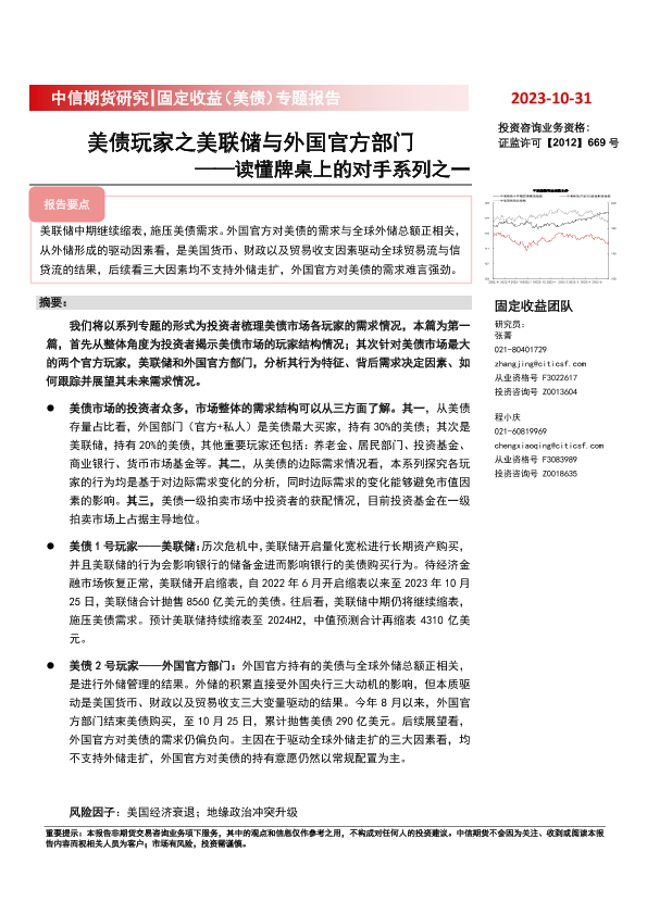 【中信期货】【20231031】固定收益(美债)专题报告:读懂牌桌上的对手系列之一,美债玩家之美联储与外国官方部门-20页