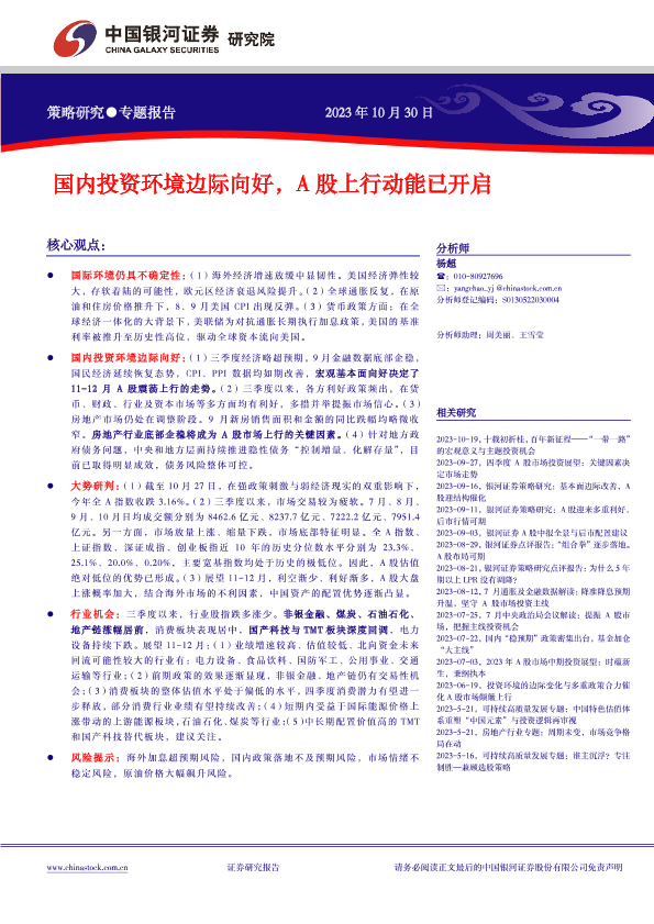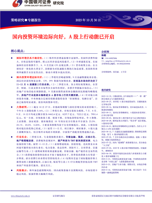 【银河证券】【20231030】国内投资环境边际向好,A股上行动能已开启-22页